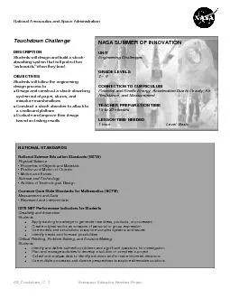 E 2 1 Aerospace Education Services Project National Aeronautics and Space Administration Touchdown Challenge DESCRIPTION Students will d esign and build a shock absorbing