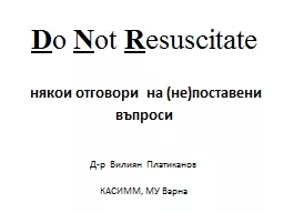 N ot R esuscitate някои отговори на не поставени въпроси Др Вилиян Платиканов КАСИММ МУ Варна