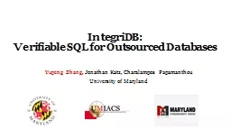 Verifiable SQL for Outsourced Databases Yupeng Zhang Jonathan Katz Charalampos Papamanthou University of Maryland What is a verifiable database digest δ