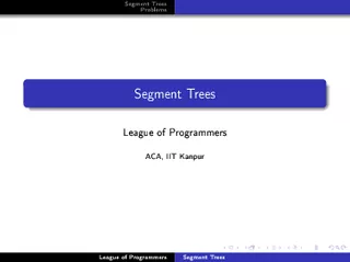 Download Presentation The PPT/PDF document "SegmentTreesProblems" is the property of its rightful owner. Permission is granted to download and print the materials on this website for personal, non-commercial use only, and to display it on your personal computer provided you do not modify the materials and that you retain all copyright notices contained in the materials. By downloading content from our website, you accept the terms of this agreement.