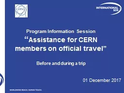 Assistance for CERN members on official travel Before and during a trip 01 December 2017 Your speakers today Walter Ter Laak Senior Operations Liaison Officer
