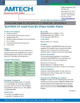 SynTECH LFLead FreeNo ManufacturedforChipQuikInc by SMTInternationalLLC POBox989 DeepRiverCT06417 Tollfree8004350317 Phone8605268300 Fax8605268243 wwwamtechsoldercom AnISO9001Ce