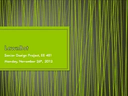 Download Presentation The PPT/PDF document "LawnBot" is the property of its rightful owner. Permission is granted to download and print the materials on this website for personal, non-commercial use only, and to display it on your personal computer provided you do not modify the materials and that you retain all copyright notices contained in the materials. By downloading content from our website, you accept the terms of this agreement.
