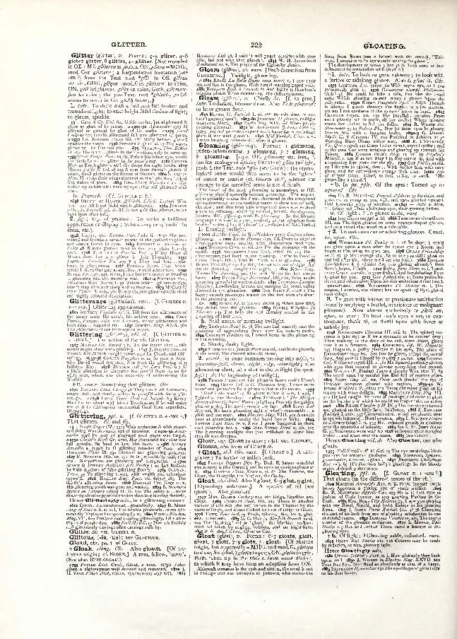 GLITTER Glitter glrtai v Forms 45 gliter 46 gleter glyter 6 glittre 4 glitter Not recorded in OE WLglfttrm is proba ONAfraMHG mod Ger glifcern a formation see ER r fro