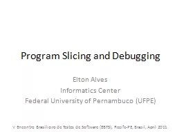 Slicing and Debugging Elton Alves Informatics Center Federal University of Pernambuco UFPE V Encontro Brasilieiro de Testes de Software EBTS RecifePE Brazil
