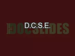 Download Presentation The PPT/PDF document "D.C.S.E." is the property of its rightful owner. Permission is granted to download and print the materials on this website for personal, non-commercial use only, and to display it on your personal computer provided you do not modify the materials and that you retain all copyright notices contained in the materials. By downloading content from our website, you accept the terms of this agreement.
