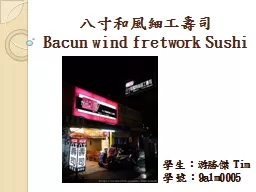 Bacun wind fretwork Sushi 學生游勝傑 Tim 學號 9a1m0005 電話 062900706 地址 裕農路 628 號 只接受 訂位客人 What 體驗板前握壽司 When 792013