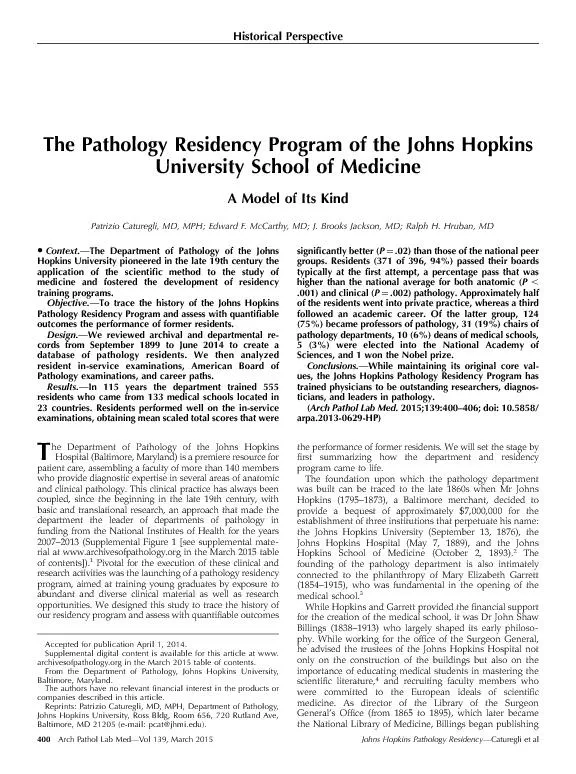 ThePathologyResidencyProgramoftheJohnsHopkinsUniversitySchoolofMedicineAModelofItsKindPatrizioCaturegliMDMPHEdwardFMcCarthyMDJBrooksJacksonMDRalphHHrubanMDContextTheDepartmentofPathologyof