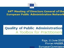 Meeting of Directors General of the European Public Administration Network Riga 11 June 2015 Florian HAUSER European Commission Quality of Public Administration